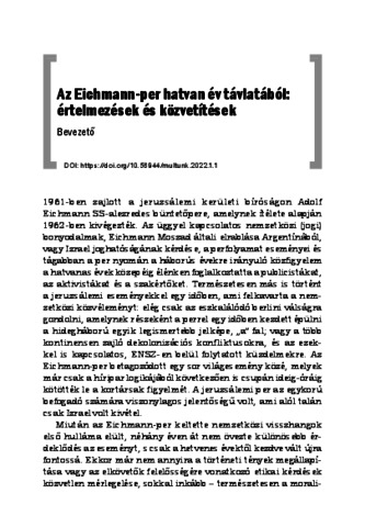 Scheibner, Tamás and Zombory, Máté (2022) Az Eichmann-per hatvan év távlatából: értelmezések és közvetítések. MÚLTUNK - POLITIKATÖRTÉNETI FOLYÓIRAT, 67 (1). pp. 4-12. ISSN 0864-960X (nyomtatott) | 2677-156X (online)