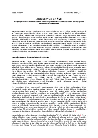 Soós, Mihály (2014) „Szlavkó” és az ÁVH : Megadja Ferenc Miklós nyilas pártszolgálatos beszervezésének és Nyugatra szökésének története. BETEKINTŐ, 8 (3). ISSN 1788-7569