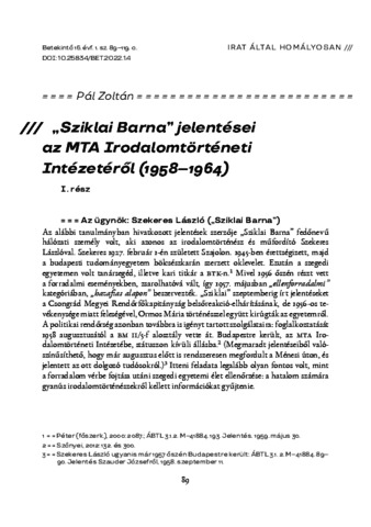 Pál, Zoltán (2022) „Sziklai Barna” jelentései az MTA Irodalomtörténeti Intézetéről (1958–1964) I. rész. BETEKINTŐ, 16 (1). pp. 89-119. ISSN 1788-7569