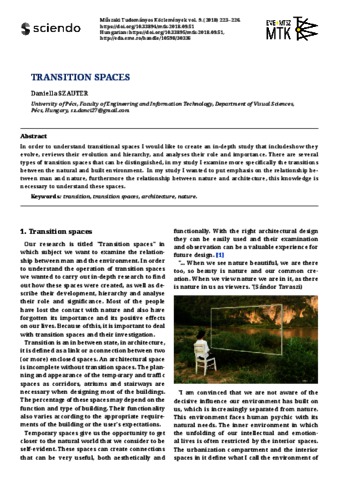 Szauter, Daniella (2018) Transition Spaces. Papers on Technical Science, 9. pp. 223-226. ISSN 2601-5773