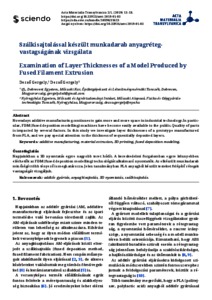 Napjainkban a 3D nyomtatás egyre nagyobb teret hódít. A kereskedelmi forgalomban egyre könnyebben elérhetők az FDM (fused deposition modelling) technológiát alkalmazó nyomtatók. Az elkészült munkadarab minőségét több tényező is meghatározza. Jelen tanulmányban PLA anyagból készült testeket felépítő rétegek vastagságát vizsgáljuk.