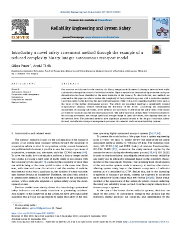 Pauer, Gábor and Török, Árpád (2022) Introducing a novel safety assessment method through the example of a reduced complexity binary integer autonomous transport model. RELIABILITY ENGINEERING & SYSTEM SAFETY, 217. p. 108062. ISSN 0951-8320