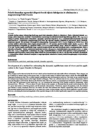 Nyiri, Emese and Török, Gergely Tihamér (2022) Folyók dinamikus egyensúlyi állapotát becslő eljárás kidolgozása és alkalmazása a magyarországi Felső-Dunára = Development of a method for estimating the dynamic equilibrium state of rivers and its application to the Upper Danube in Hungary. HIDROLÓGIAI KÖZLÖNY, 102 (3). pp. 20-32. ISSN 0018-1323