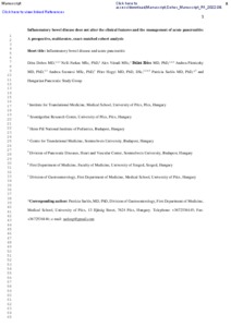 Dohos, Dóra and Farkas, Nelli and Váradi, Alex and Erőss, Bálint and Párniczky, Andrea and Szentesi, Andrea and Hegyi, Péter and Sarlós, Patrícia (2022) Inflammatory bowel disease does not alter the clinical features and the management of acute pancreatitis: A prospective, multicentre, exact-matched cohort analysis. PANCREATOLOGY. ISSN 1424-3903 (print); 1424-3911 (online) (In Press)