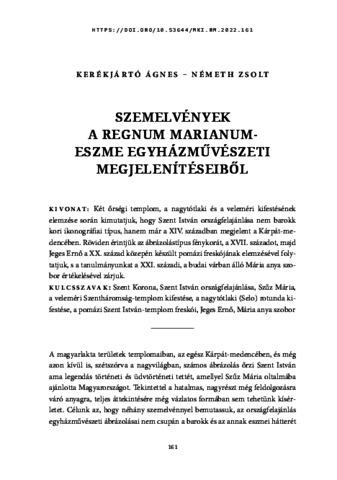 Kerékjártó, Ágnes and Németh, Zsolt (2022) Szemelvények a Regnum Marianum-eszme egyházművészeti megjelenítéseiből. In: Regnum Marianum : Az eszme története, jelentősége és hatása. A Magyarságkutató Intézet Kiadványai (46). Magyarságkutató Intézet, Budapest, pp. 161-197. ISBN 9786156117595