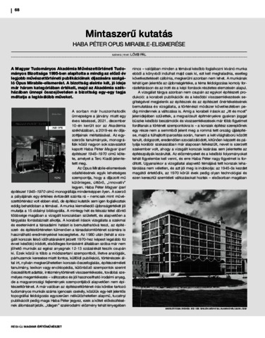 Lővei, Pál (2022) Mintaszerű kutatás. Haba Péter Opus Mirabile-elismerése. UTÓIRAT. POST SCRIPTUM - A RÉGI-ÚJ MAGYAR ÉPÍTŐMŰVÉSZET MELLÉKLET, 22 (121). pp. 68-69. ISSN 1789-9680