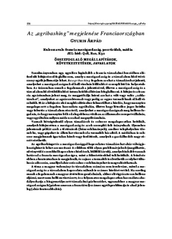 Gyuris, Árpád (2022) Az „agribashing” megjelenése Franciaországban. GAZDÁLKODÁS, 66 (2). pp. 158-169. ISSN 0046-5518
