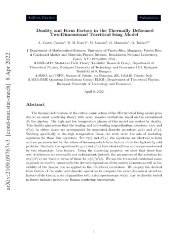 Cortes, Cubero Axel and Konik, Robert and Lencsés, Máté and Mussardo, Giuseppe and Takács, Gábor (2022) Duality and form factors in the thermally deformed two-dimensional tricritical Ising model. SCIPOST PHYSICS, 12 (5). ISSN 2542-4653