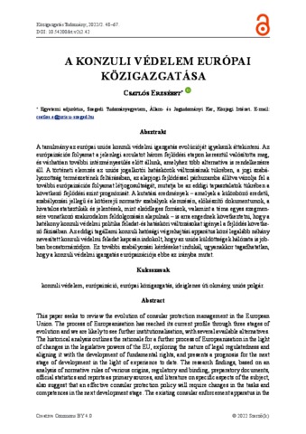 Csatlós, Erzsébet (2022) A konzuli védelem európai közigazgatása. KÖZIGAZGATÁSTUDOMÁNY, 2 (2). pp. 48-67. ISSN 2786-1910