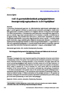 A tanulmány Dosztojevszkij gyermek- és nőábrázolásának legfontosabb sajátosságait vizsgálja. A szerző igyekszik rámutatni az adott korszak ambivalens jelenségeire, melyek befolyást gyakoroltak a nevelésre, továbbá az író világában látensen mindig jelen levő evangéliumi ideál érvényesülésére. A Dosztojevszkij-szakirodalomban viszonylag kevés figyelmet kapott az a kérdés, hogy milyen szerepet játszik az író műveiben a nevelés, a civilizációnak ez az egyedi eszköze, mely lehetővé teszi számunkra a „belső ember” fejlesztését, az erkölcsi kiteljesedés alapfeltételét. A tanulmány négy témakörben elemzi a témát: 1. A nevelés témája pozitív értelemben, avagy a fejlődésregény műfajának dosztojevszkiji változatai. 2. A nevelés társadalmi formái Dosztojevszkij műveiben: az iskola mint gyermektársadalom. 3. A gyermekek és a nők mint a regényhősök pártfogoltjai. 4. A nevelés kérdése fonák oldalról: a megrontás, a gyermek vagy a fiatal lány tönkretétele Dosztojevszkij regényeiben – avagy az „antipedagógia” esetei.