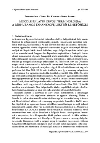 Zimonyi, Ákos and Varga, Éva Katalin and Barta, Andrea (2022) Moodle és latin orvosi terminológia: a párhuzamos tananyagfejlesztés lehetőségei. In: A digitális oktatás nyelvi dimenziói : Válogatás a PeLiKon2020 oktatásnyelvészeti konferencia kerekasztal-beszélgetéseiből és előadásaiból (Kálmán László emlékére). Eszterházy Károly Katolikus Egyetem Líceum Kiadó, Eger, pp. 277-285.