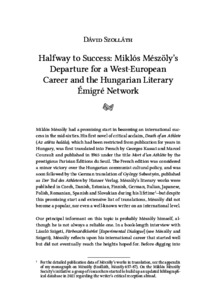 Szolláth, Dávid (2022) Halfway to Success: Miklós Mészöly’s Departure for a West-European Career and the Hungarian Literary Émigré Network. In: Contemporary and Recent Hungarian Fiction : Reception and Cross-Cultural Interpretations. Cser Publishing House; ELTE University Press, Budapest, pp. 81-94.