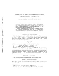 Zhelezov, Dmitrii and Pálvölgyi, Dömötör (2021) Query complexity and the polynomial Freiman–Ruzsa conjecture. ADVANCES IN MATHEMATICS, 392. ISSN 0001-8708