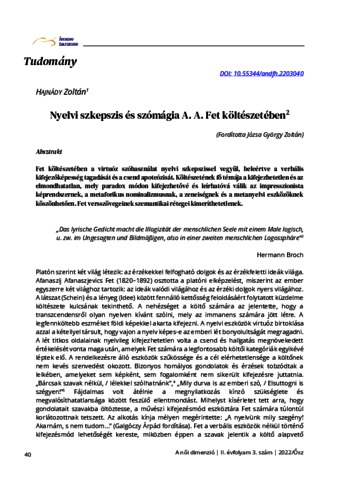 | Additional Information: | A tanulmány eredeti megjelenése: ХАЙНАДИ Золтан Языковой скепсис и языковая магия в поэзии А. А. Фета. // Slavica, 2022 (LI): 44–58. o. Fordította: Józsa György Zoltán |