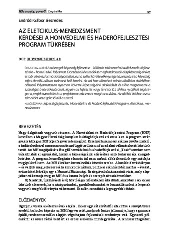 Endrődi, Gábor (2021) Az életciklus-menedzsment kérdései a Honvédelmi és Haderőfejlesztési Program tükrében. HONVÉDSÉGI SZEMLE : A MAGYAR HONVÉDSÉG SZAKMAI, TUDOMÁNYOS FOLYÓIRATA, 149 (4). pp. 97-108. ISSN 2060-1506 (nyomtatott); 2732-3226 (elektronikus)