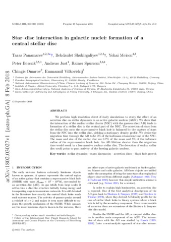 Panamarev, T. and Shukirgaliyev, B. and Meiron, Yohai and Berczik, Péter and Just, A. (2018) Star-disc interaction in galactic nuclei: formation of a central stellar disc. MONTHLY NOTICES OF THE ROYAL ASTRONOMICAL SOCIETY, 476 (3). pp. 4224-4233. ISSN 0035-8711