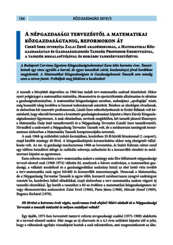 Csekő, Imre and Zalai, Ernő (2019) A népgazdasági tervezéstől a matematikai közgazdaságtanig, reformokon át. KÖZ-GAZDASÁG, 14 (2). pp. 154-159. ISSN 1788-0696