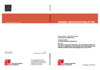 Papp, Júlia (2021) Die „Neuverwertung“ der Illustration eines astrologischen Buches vom Ende des 15. Jahrhunderts in den deutschen Neuen Zeitungen über die Schlacht bei Mohács (1526) und die Belagerung von Wien (1529). WIENER GESCHICHTSBLATTER: VEREIN FŰR GESCHICHTE DER STADT WIEN, 76 (2). pp. 115-133. ISSN 0043-5317