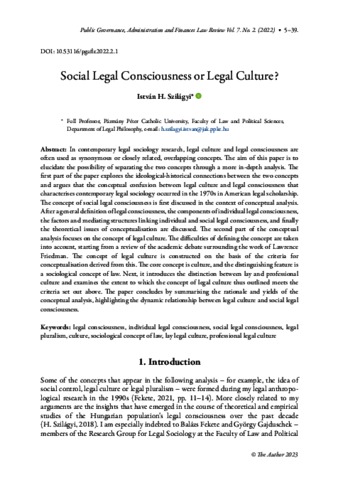 H. Szilágyi, István (2022) Social Legal Consciousness or Legal Culture? PUBLIC GOVERNANCE ADMINISTRATION AND FINANCES LAW REVIEW, 7 (2). pp. 5-39. ISSN 2498-6275