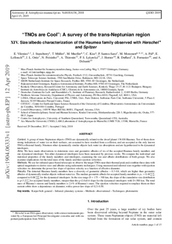 Vilenius, E. and Stansberry, J. and Müller, T. and Mueller, M. and Kiss, Csaba and Pál, András (2018) "TNOs are Cool": A survey of the trans-Neptunian region. XIV. Size/albedo characterization of the Haumea family observed with Herschel and Spitzer. ASTRONOMY & ASTROPHYSICS, 618. ISSN 0004-6361
