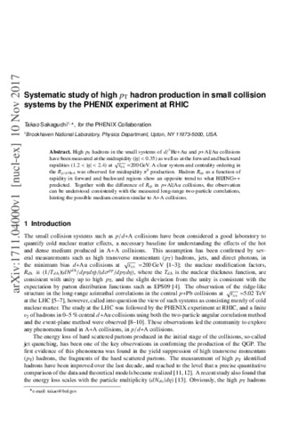 Sakaguchi, T. and Csörgő, Tamás and Csanád, M. (2018) Systematic study of high pT hadron production in small collision systems by the PHENIX experiment at RHIC. EPJ WEB OF CONFERENCES, 172. ISSN 2101-6275