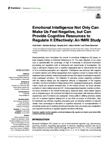 Deak, Anita and Bodrogi, Barbara and Orsi, Gergely and Perlaki, Gabor and Bereczkei, Tamas (2022) Emotional Intelligence Not Only Can Make Us Feel Negative, but Can Provide Cognitive Resources to Regulate It Effectively: An fMRI Study. FRONTIERS IN PSYCHOLOGY, 13. ISSN 1664-1078
