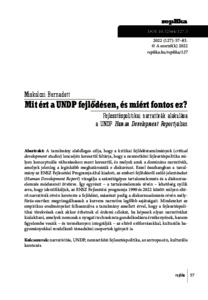 Miskolczi, Bernadett (2022) Mit ért a UNDP fejlődésen, és miért fontos ez? Fejlesztéspolitikai narratívák alakulása a UNDP Human Development Reportjaiban. REPLIKA (127). pp. 57-83. ISSN 0865-8188