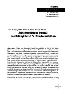 Troll, Veronika and Feledy, Anna and Mózer, Mátyás Márton (2022) Antiszemitizmus-kutatás Kosztolányi Dezső Pardon-korszakában. REPLIKA (127). pp. 167-190. ISSN 0865-8188