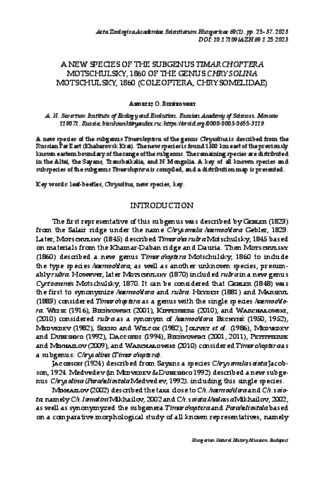 Bieńkowski, Andrzej O. (2023) A new species of the subgenus Timarchoptera Motschulsky, 1860 of the genus Chrysolina Motschulsky, 1860 (Coleoptera, Chrysomelidae). ACTA ZOOLOGICA ACADEMIAE SCIENTIARUM HUNGARICAE, 69 (1). pp. 25-37. ISSN 1217-8837 (print), 2064-2474 (online)
