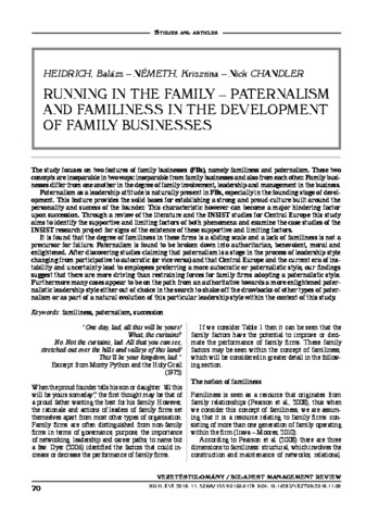 Heidrich, Balázs and Németh, Krisztina and Chandler, Nick (2016) Running in the Family – Paternalism and Familiness in the Development of Family Businesses. VEZETÉSTUDOMÁNY, 47 (11). pp. 70-82. ISSN 0133-0179