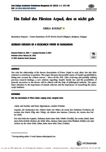 Juhász, Erika (2022) Ein Enkel des Fürsten Arpad, den es nicht gab. ACTA ANTIQUA ACADEMIAE SCIENTIARUM HUNGARICAE, 62 (1-3). pp. 145-166. ISSN 0044-5975 (print); 1588-2543 (online)