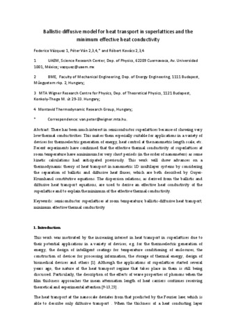 Vázquez, F. and Ván, Péter and Kovács, Róbert Sándor (2020) Ballistic-diffusive model for heat transport in superlattices and the minimum effective heat conductivity. ENTROPY, 22 (2). ISSN 1099-4300