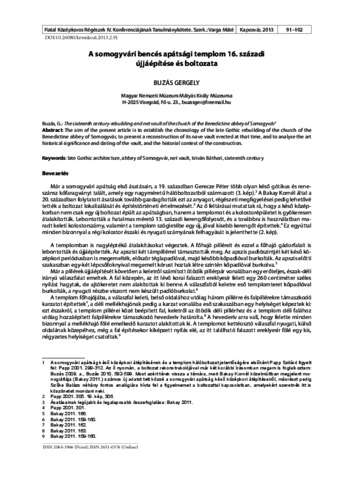 | Uncontrolled Keywords: | late Gothic architecture, abbey of Somogyvár, net vault, István Báthori, sixteenth century |