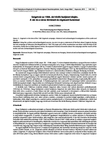 Hancz, Erika (2013) Szigetvár az 1566. évi török hadjárat idején. A vár és a város történeti és régészeti kutatásai = Szigetvár in the time of the 1566 Szigetvár campaign. Historical and archaeological investigations of the castle and the city. A KAPOSVÁRI RIPPL-RÓNAI MÚZEUM KÖZLEMÉNYEI (2). pp. 149-157. ISSN 2064-1966 (print), 2631-0376 (online)