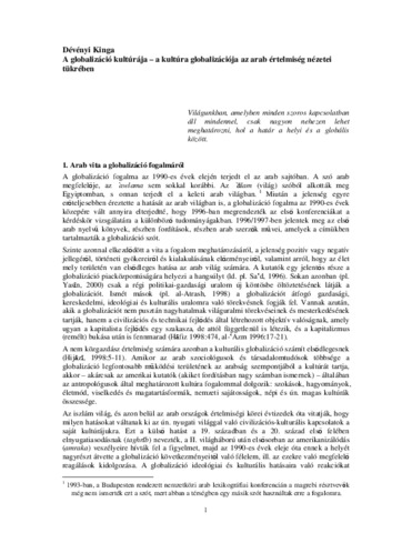 Dévényi, Kinga (2008) A globalizáció kultúrája - a kultúra globalizációja az arab értelmiség nézeteinek tükrében. In: 60 éves a Közgazdaságtudományi Egyetem : A Jubileumi Tudományos Konferencia alkalmából készült tanulmányok. Aula kiadó, pp. 83-97. ISBN 9789639698642