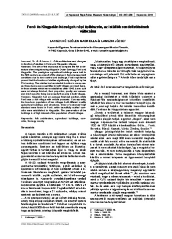 Lanszkiné Széles, Gabriella and Lanszki, József (2014) Fonó és Kisgyalán községek népi építészete, az istállók rendeltetésének változása = Folk architecture and changes in function of stables in Fonó and Kisgyalán villages. A KAPOSVÁRI RIPPL-RÓNAI MÚZEUM KÖZLEMÉNYEI (3). pp. 247-256. ISSN 2064-1966 (nyomtatott); 2631-0376 (elektronikus)