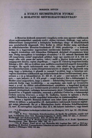 Borzsák, István (1976) A nyelvi szubsztrátum nyomai a horatiusi szöveghagyományban. ANTIK TANULMÁNYOK - STUDIA ANTIQUA, 23 (1). pp. 82-90. ISSN 0003-567X