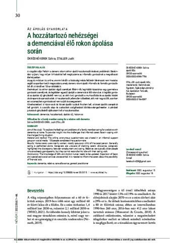Ökrösné Kerek, Szilvia and Staller, Judit (2022) A hozzátartozó nehézségei a demenciával élő rokonok ápolása során = Difficulties for a family member caring for a relative with dementia. NŐVÉR, 35 (4). pp. 30-37. ISSN 0864-7003