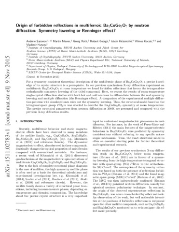 Sazonov, A. and Meven, M. and Roth, G. and Georgii, R. and Kézsmárki, István and Kocsis, Vilmos (2016) Origin of forbidden reflections in multiferroic Ba2CoGe2O7 by neutron diffraction: symmetry lowering or Renninger effect? JOURNAL OF APPLIED CRYSTALLOGRAPHY, 49. pp. 556-560. ISSN 0021-8898