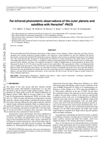 Müller, T.G. and Balog, Zoltán and Nielbock, M. and Moreno, R. and Klaas, U. and Moór, Attila (2016) Far-infrared photometric observations of the outer planets and satellites with Herschel-PACS. ASTRONOMY & ASTROPHYSICS, 588. ISSN 0004-6361