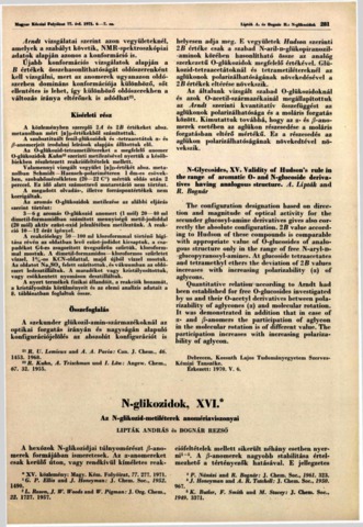 Lipták, András and Bognár, Rezső (1971) N-glikozidok XVI. : Az N-glikozid-metiléterek anomériaviszonyai = N-Glycosides XVI. Anoineric Relations of the N-Glycoside Methyl Ethers. MAGYAR KÉMIAI FOLYÓIRAT, 77 (6-7). pp. 281-286. ISSN 0025-0155