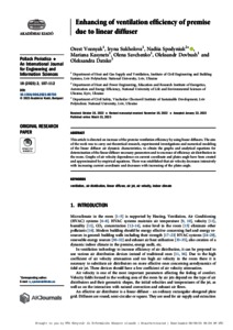 Voznyak, Orest and Sukholova, Iryna and Spodyniuk, Nadiia and Kasynets, Mariana and Savchenko, Olena and Dovbush, Oleksandr and Datsko, Oleksandra (2023) Enhancing of Ventilation Efficiency of Premise Due to Linear Diffuser. POLLACK PERIODICA : AN INTERNATIONAL JOURNAL FOR ENGINEERING AND INFORMATION SCIENCES, 18 (2). pp. 107-112. ISSN 1788-1994 (print); 1788-3911 (online)