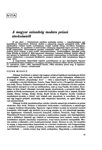 Czine, Mihály and Németh, G. Béla and Diószegi, András (1969) A magyar századvég modern prózai törekvéseiről. HELIKON, 15 (1). pp. 77-94. ISSN 0017-999X