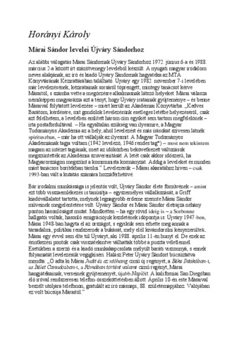 Horányi, Károly Sándor (2001) Márai Sándor levelei Újváry Sándorhoz. KORTÁRS: IRODALMI ÉS KRITIKAI FOLYÓIRAT, 45 (8). pp. 37-56. ISSN 0023-415X