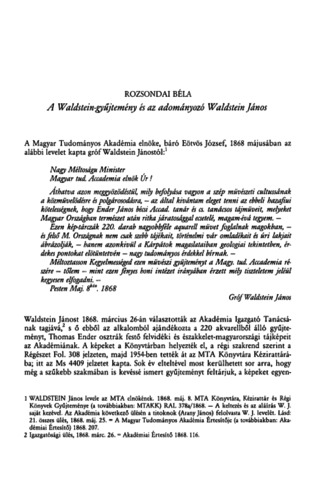 Rozsondai, Béla (2001) A Waldstein-gyűjtemény és az adományozó Waldstein János (The Waldstein collection and its donator, János Waldstein). In: Örökségünk, élő múltunk. MTA Könyvtára, Budapest, pp. 163-190. ISBN 9637451048