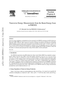 Mitchell, J. T. and Adare, A. and Afanasiev, S. and Aidala, C. and Ajitanand, N. N. and Csanád, Máté and Csörgő, Tamás and Kincses, Dániel and Kiss, Ádám and Varga-Kőfaragó, Mónika and Nagy, Márton and Novák, Tamás and Ster, András and Sziklai, János István and Tarján, Péter and Ujvári, Balázs and Vargyas, Márton and Vértesi, Róbert and Zimányi, József (2016) Transverse Energy Measurements from the Beam Energy Scan in PHENIX. NUCLEAR PHYSICS A, 956. pp. 842-845. ISSN 0375-9474