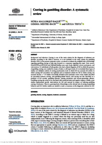 Mallorquí-Bagué, Núria and Mestre-Bach, Gemma and Testa, Giulia (2023) Craving in gambling disorder: A systematic review. Journal of Behavioral Addictions, 12 (1). pp. 53-79. ISSN 2062-5871