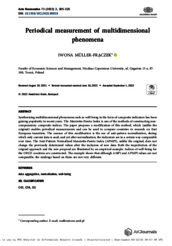 Müller-Frączek, Iwona (2023) Periodical measurement of multidimensional phenomena. ACTA OECONOMICA, 73 (2). pp. 305-325. ISSN 0001-6373