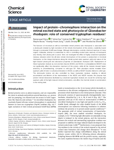 Misra, Ramprasad and Das, Ishita and Dér, András and Steinbach, Gábor and Shim, Jin-gon and Busse, Wayne and Jung, Kwang-Hwan and Zimányi, László and Sheves, Mordechai (2023) Impact of protein–chromophore interaction on the retinal excited state and photocycle of Gloeobacter rhodopsin: role of conserved tryptophan residues. CHEMICAL SCIENCE, 14 (36). pp. 9951-9958. ISSN 2041-6520