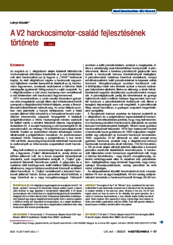 Lányi, Aladár (2022) V2 harckocsimotor-család fejlesztésének története 1. rész. HADITECHNIKA, 56 (2). pp. 57-61. ISSN 0230-6891